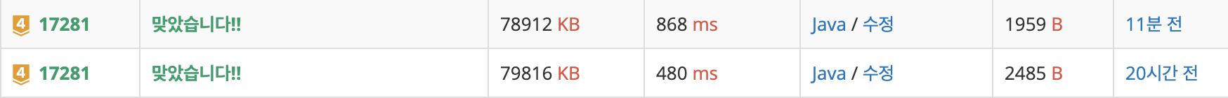(그런데 move 부분을 함수로 모듈화시켜서 이렇게 고쳤더니 시간이 거의 400대에서 800대로 늘었다. 이유는 선생님께 여쭤보고 나서 추가해야겠다..!)