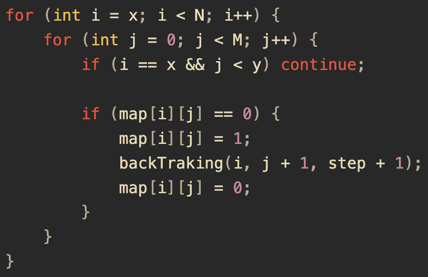 헷갈려서 이전에 뽑은 좌표를 주지 않고, 늘 (0, 0) 부터 탐색하게 했더니 시간이 거의 두 배가 들었다.