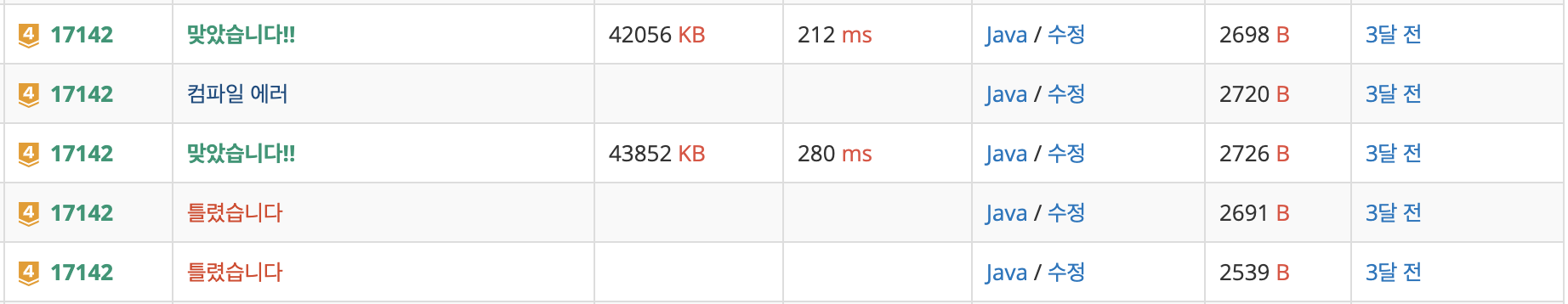 그 부분 고치고 무난하게 풀었다.