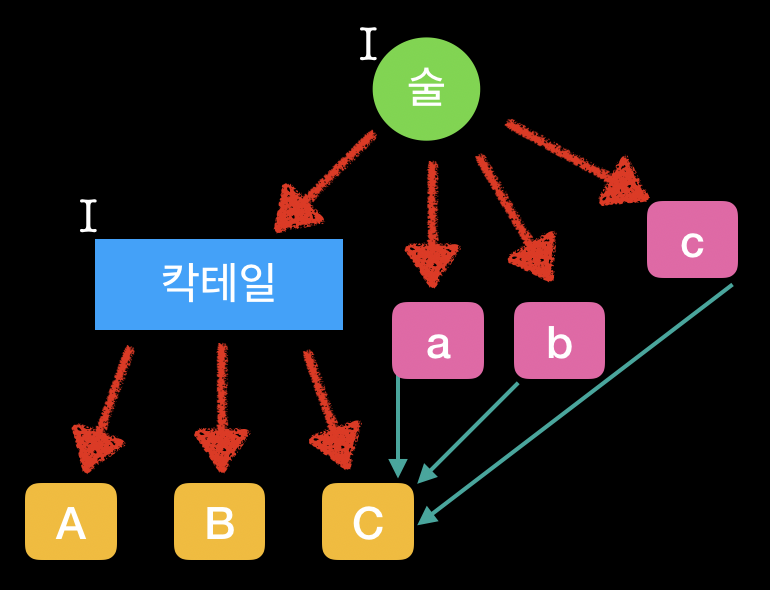 노란색 클래스(칵테일 인터페이스를 구현한 클래스)가 됩니다.