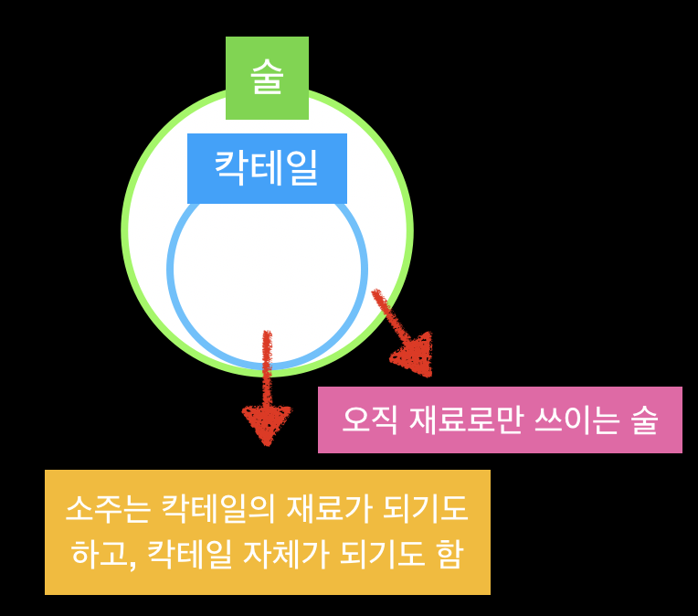 그렇지만 이 방식은, 술이 재료이면서 동시에 칵테일인 경우를 제대로 표현하지 못합니다.