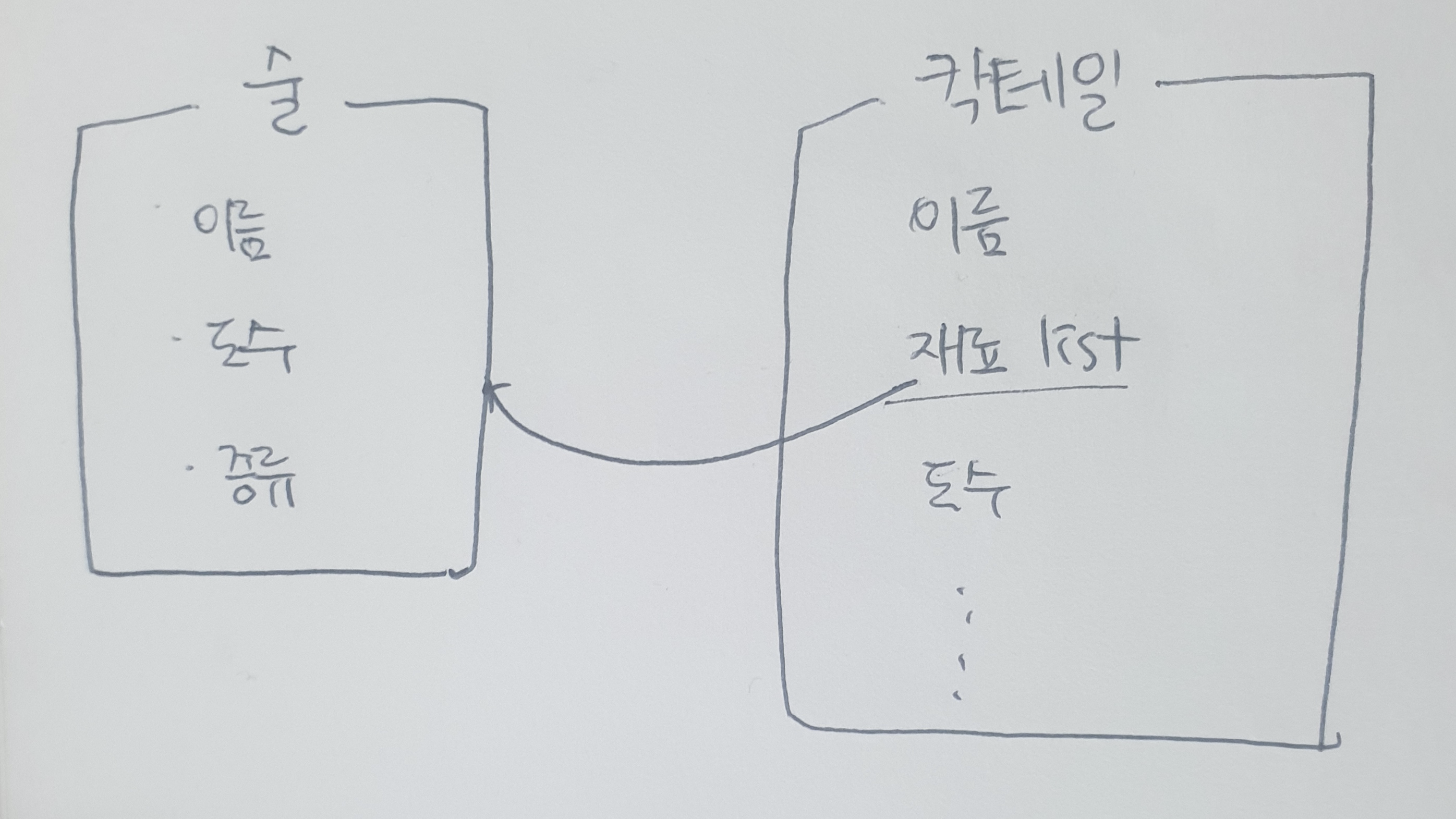 술이라는 class가 칵테일의 재료 list에 들어갑니다.