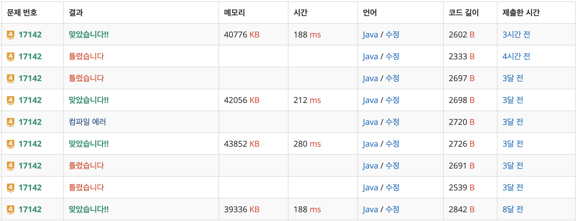 그래도 처음 풀 때보다 훨씬 빨리 풀었다!ㅎㅎ