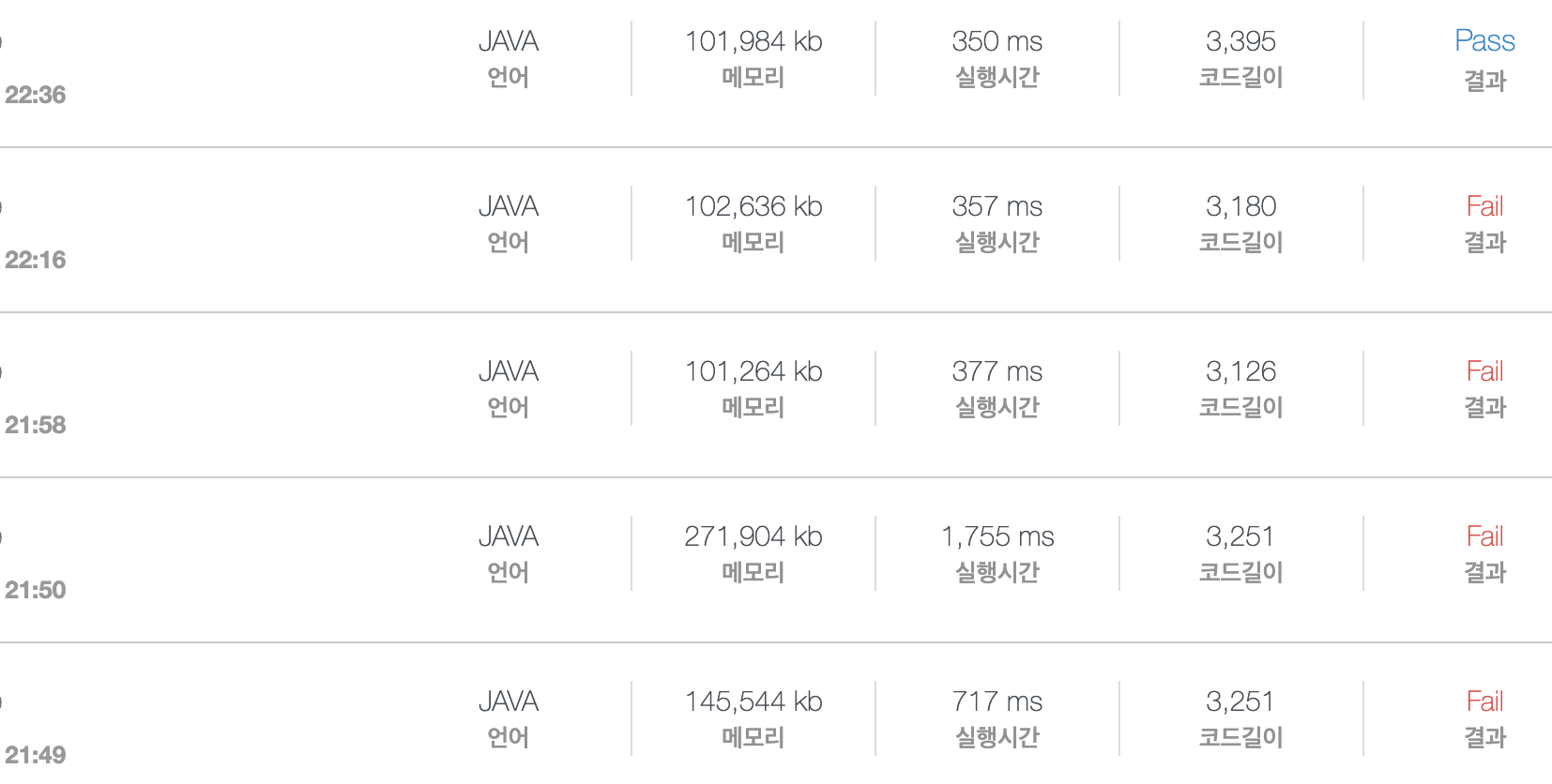 구현은 1시간 10분정도 걸렸는데 44/50개로 계속 fail 떠서.. 이거 잡는데 한시간 걸렸다ㅠ