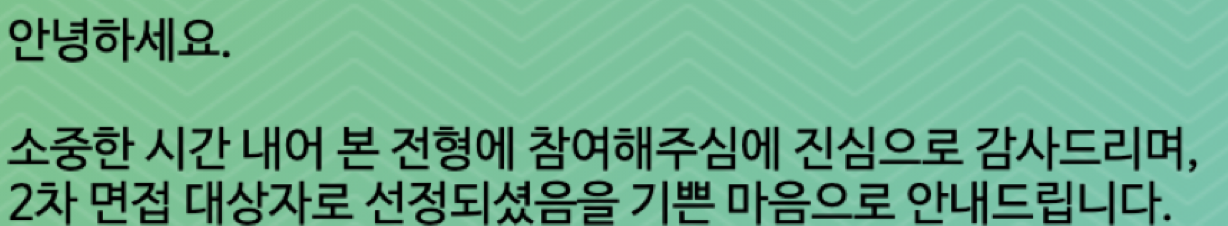 오.. 예상하지 못한 결과였습니다. 사실 1차 면접에서 웬만한건 다 대답을 하긴 했지만, 놓친 부분도 약간 있었는데 붙어서 놀랐습니다.ㅋㅋ