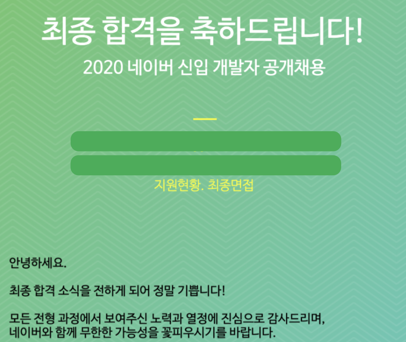 컴퓨터를 처음 공부한 시점부터 동경했던 네이버에 최종합격했다는 사실이 너무 신기했고, 아직도 신기합니다.