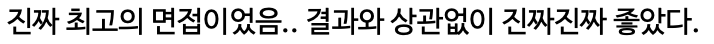실무 팀장님들과 1차 면접을 보면서, 그리고 임원 분들과 2차 면접을 보면서 회사에서 추구하는 개발 방향과 성장하려는 노력이 굉장히 와닿았습니다. 특히 위에도 썼지만 대표님께서 면접때 해주신 말씀이 정말 많이 인상적이었습니다.