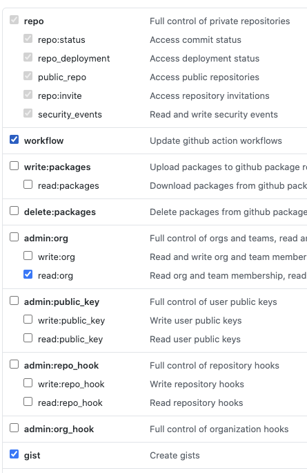 4. 웹에서 workflow 항목을 추가로 체크 후 하단의 Generate Token을 클릭한다.